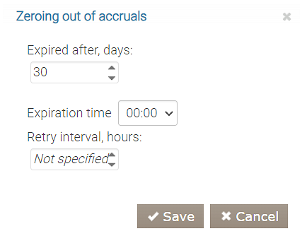 - Interwał ponawiania, godziny. Załóżmy, że system z jakiegoś powodu technicznego nie zdążył odjąć punktów na czas. W określonym czasie system będzie próbował je odjąć: „1” oznacza jedną próbę godzinę po niepowodzeniu, „2” oznacza 2 próby w ciągu 2 godzin, każda godzina po niepowodzeniu (jedna próba na godzinę). Jeśli wszystkie próby się nie powiodą, dokonaj odjęcia ręcznie.