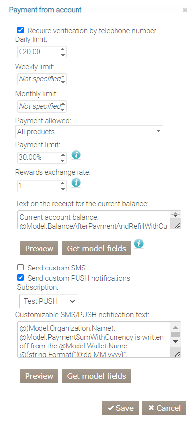 - Określ maksymalną kwotę, jaką gość może wydać w określonym czasie: limit dzienny, tygodniowy lub miesięczny.