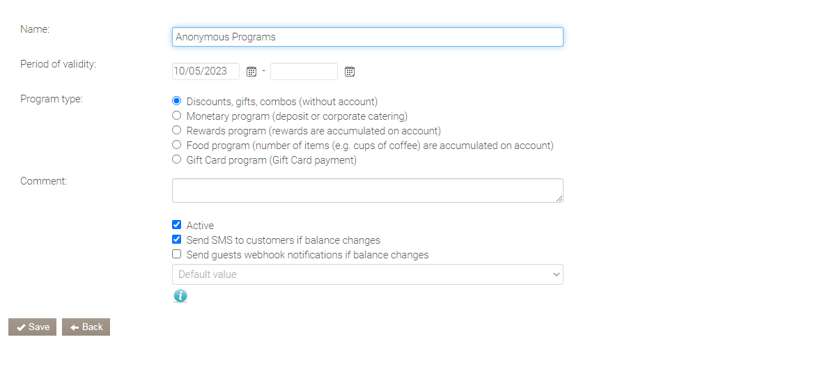 Na portalu Syrve Loyalty przejdź do Programy.