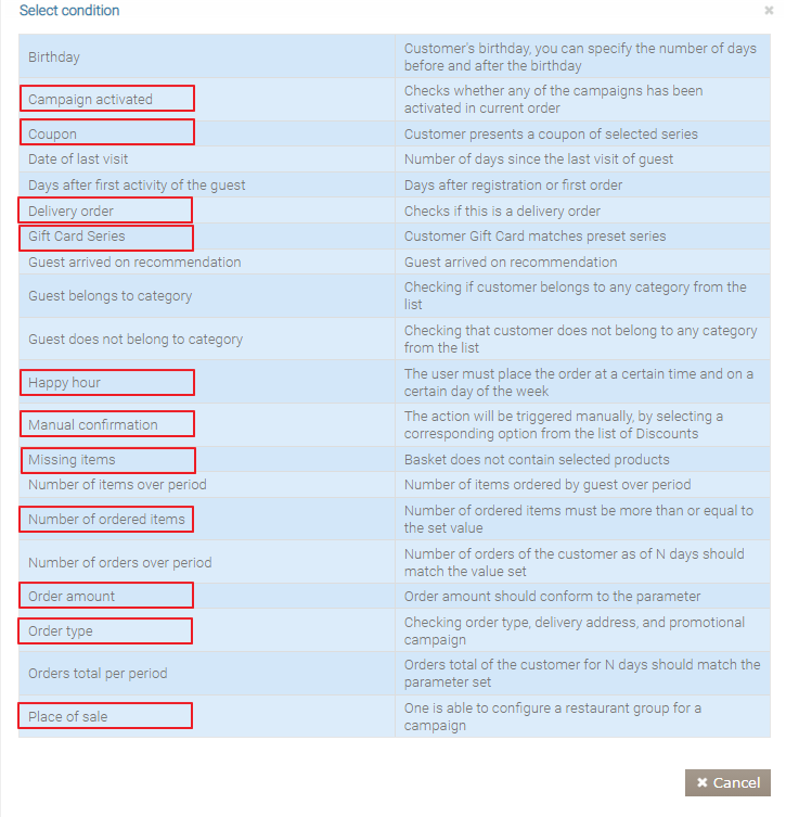 Teraz Twoi goście będą mogli korzystać z Twoich promocji i specjalnych ofert bez konieczności rejestracji lub logowania na Twojej stronie internetowej lub w Syrve POS. System sprawdzi, czy rabat lub specjalna oferta jest dostępna w następujących przypadkach: