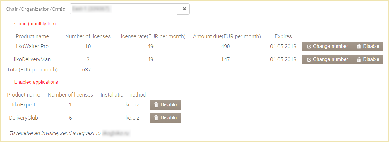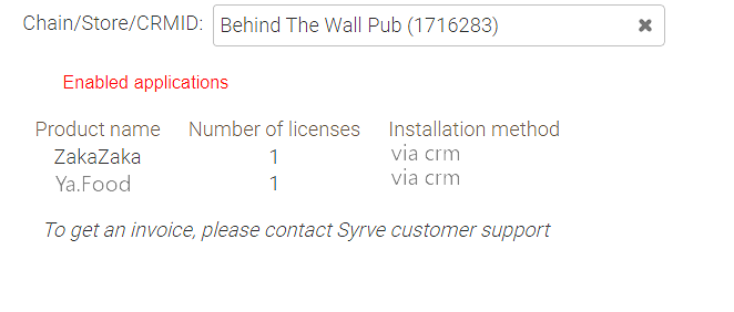 Tutaj możesz zobaczyć adres e-mail, na który wysyłamy rachunki za używane aplikacje. Jeśli nie otrzymujesz rachunków, a Twój adres e-mail nie jest tutaj podany, napisz do nas na Syrve@syrve.com.