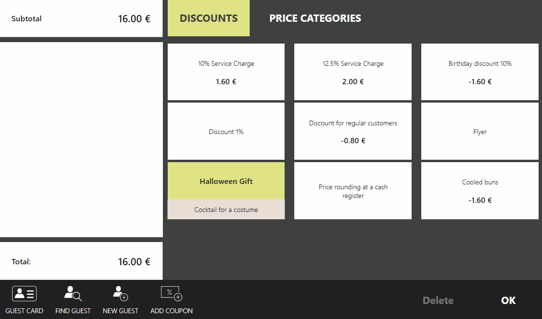 W niektórych przypadkach kasjer może zdecydować o zastosowaniu rabatu. Dotyczy to specjalnych ofert (kampanii), które nie mogą zostać potwierdzone przez system. Na przykład „Koktajl do kostiumu na Halloween.”