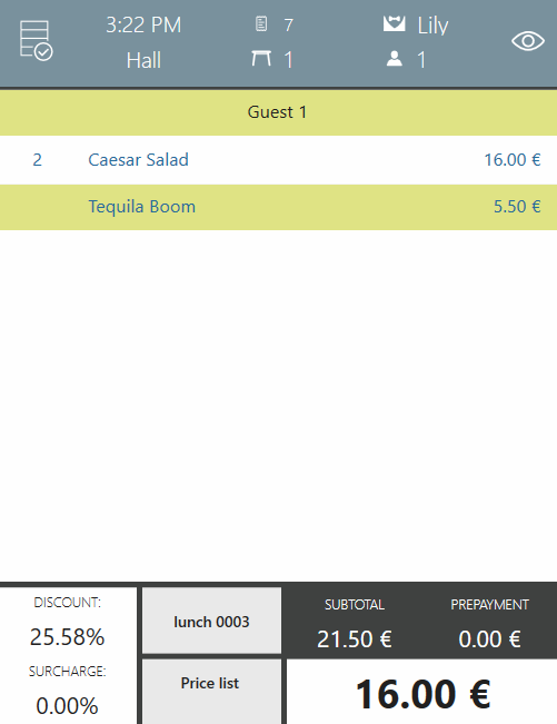 - W oknie zamówienia stuknij Rabat/Dopłata.
