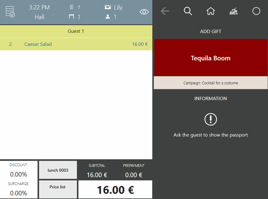 - Dodaj pozycję z menu, która zostanie podarowana gościowi zgodnie z ustawieniami kampanii.