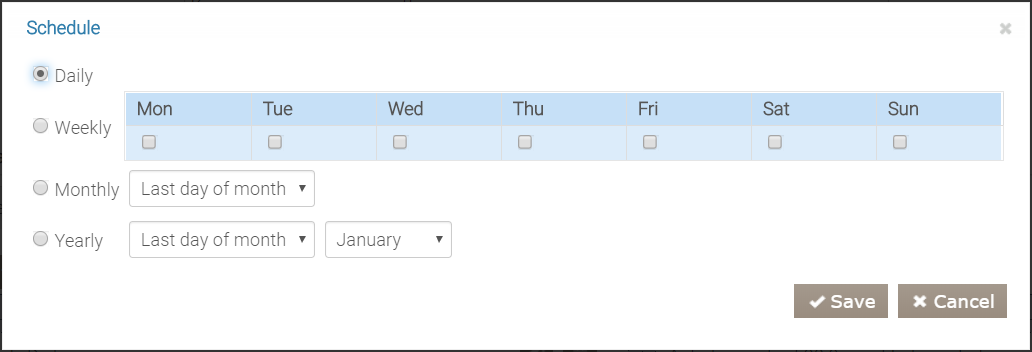 Służy do konfigurowania kampanii działających okresowo według ustalonego harmonogramu. Na przykład, aby skonfigurować codzienne kampanie doładowania wraz z akcją „Auto doładowanie” lub odwrotnie, aby skonfigurować zerowanie konta wraz z akcją „Utrata naliczonych punktów”.