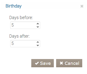 Goście mogą otrzymać zniżki i prezenty z okazji urodzin. Określ, ile dni przed i po dacie urodzin będzie dostępna specjalna oferta.