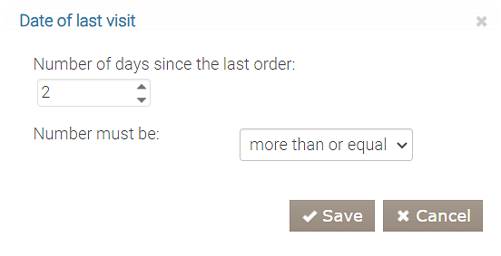 Użyj tego warunku, aby poinformować klientów, że minęło trochę czasu od ich ostatniej wizyty w Twojej restauracji, lub aby podziękować stałym klientom. Warunek uwzględnia liczbę pełnych dni od ostatniej wizyty (zaokrąglanie w dół).