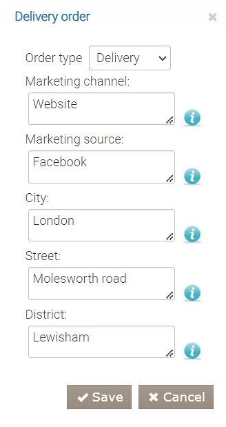 Dla trybu obsługi Dostawa dostępne są również następujące pola, jednak nie są one obowiązkowe: