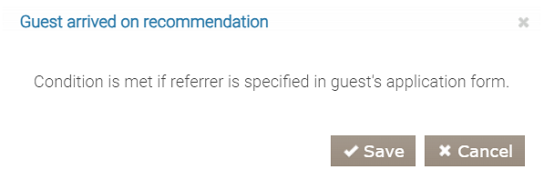 System używa tego warunku, aby sprawdzić, czy gość należy do wybranej kategorii. Warunek można zastosować zarówno do gościa, jak i polecającego.