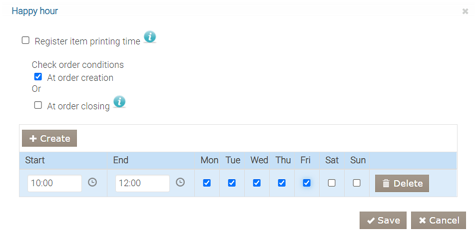 Jeśli oferta lub kampania ma obowiązywać dla całego zamówienia, moment jego otwarcia lub zamknięcia musi przypadać na okres Happy Hour.