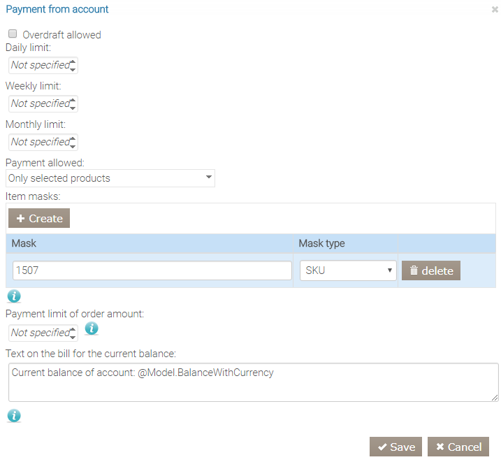 - Ustaw limit płatności tylko za jeden produkt o SKU 1507 (espresso).
