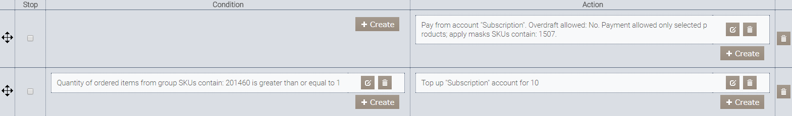 13. Dodaj warunek Saldo konta. Określ wymagane saldo, wybierz opcję Saldo musi być, np. większe lub równe. W naszym przykładzie saldo konta powinno wynosić 9, aby gość otrzymał 10-tą pizzę za darmo. 14. Utwórz dwie akcje dla warunku Saldo konta: