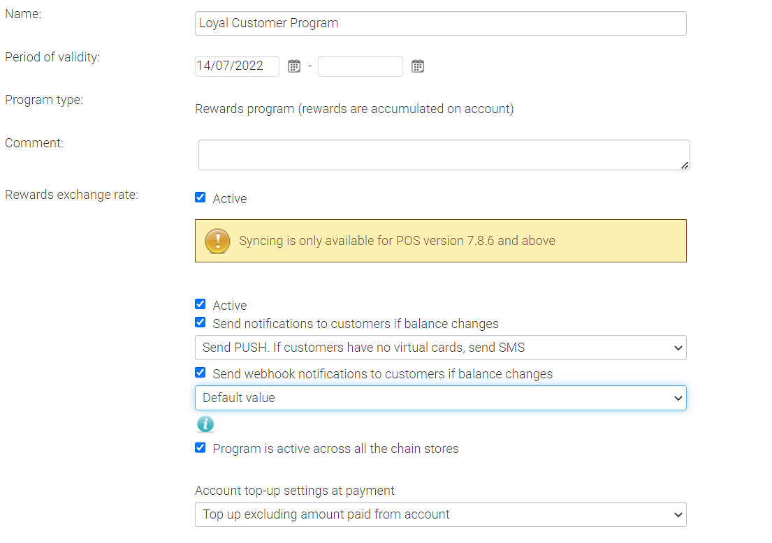 Przejdź do Syrve Loyalty > Programy.