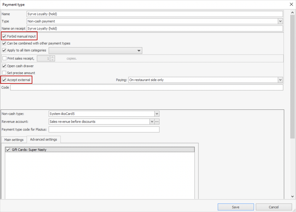 - W polu Typ bezgotówkowy wybierz system syrve-loyalty.