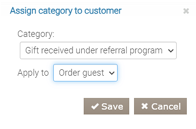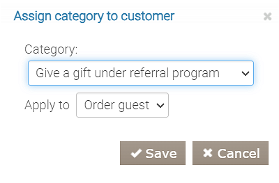 - Warunek „Gość należy do kategorii”. Wybierz kategorię „Prezent otrzymany w ramach programu poleceń”. W tym bloku prezent jest przyznawany polecającemu, dlatego trzeba mieć pewność, że należy on do wskazanej kategorii.