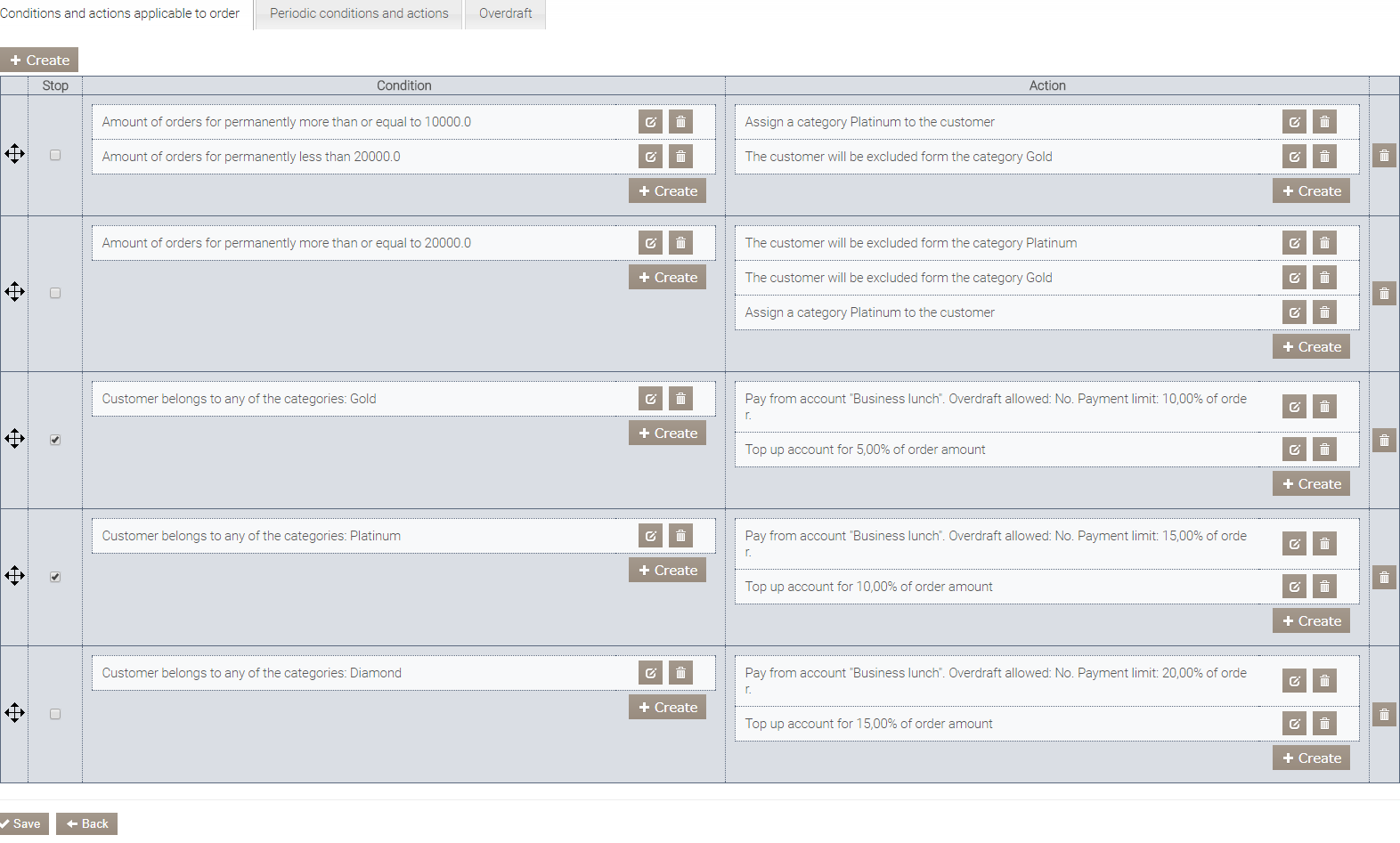 - W trzecim i czwartym bloku, gdzie skonfigurowano warunki dla rang Gold i Platinum, zaznacz kolumnę Stop.