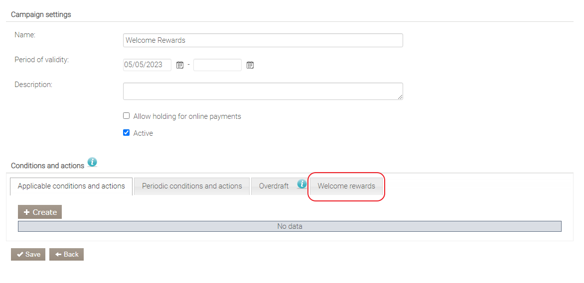 Przejdź do Welcome rewards w sekcji Conditions and actions.