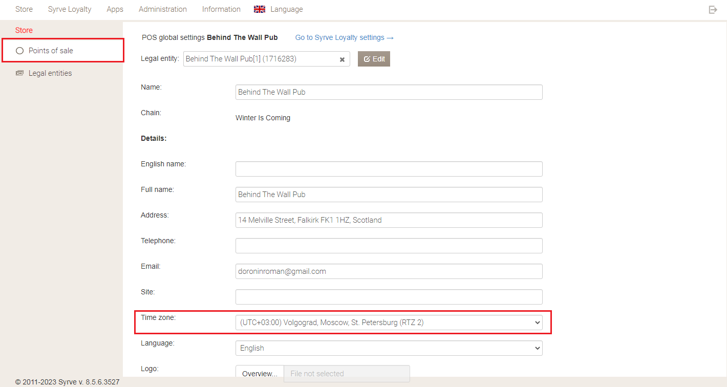 Aby zobaczyć rzeczywisty czas wykonywania operacji lojalnościowych, ustaw strefę czasową swojego sklepu.