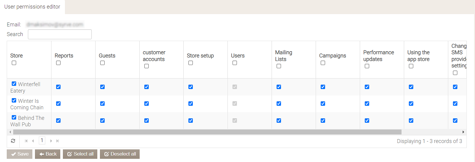 Sekcja Sklepy zawiera globalne parametry podmiotów prawnych oraz punktów sprzedaży (placówek) podłączonych do Syrve Loyalty.