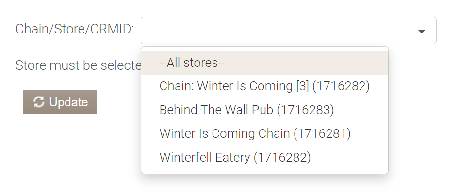 Aby przefiltrować użytkowników według konkretnego sklepu, wybierz sklep z pola Sieć/Sklep/CRMID lub wpisz ręcznie jego CRM ID.