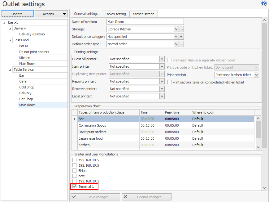 W tym celu zaznacz wymagane pozycje w bloku Stanowiska kelnera i użytkownika w ustawieniach sekcji.