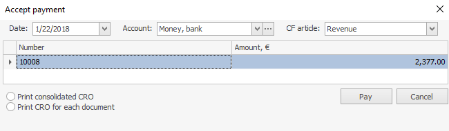 - Kwota płatności dla każdego dokumentu zostanie ustawiona automatycznie. Jeśli chcesz zarejestrować płatność częściową, wpisz wartość ręcznie.