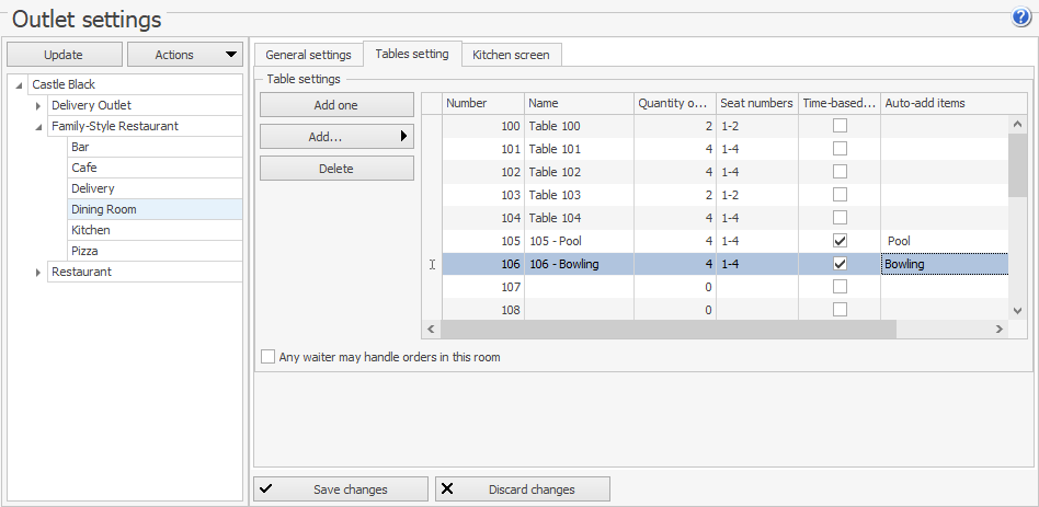 Aby przyjmować zamówienia na usługi płatne za czas, określ stoliki, przy których można je świadczyć: