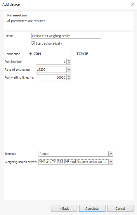 - W polu Timeout portu określ maksymalny czas w sekundach, jaki system ma czekać na odpowiedź z urządzenia. Jeśli w tym czasie nie nadejdzie odpowiedź, ważenie zostanie przerwane.