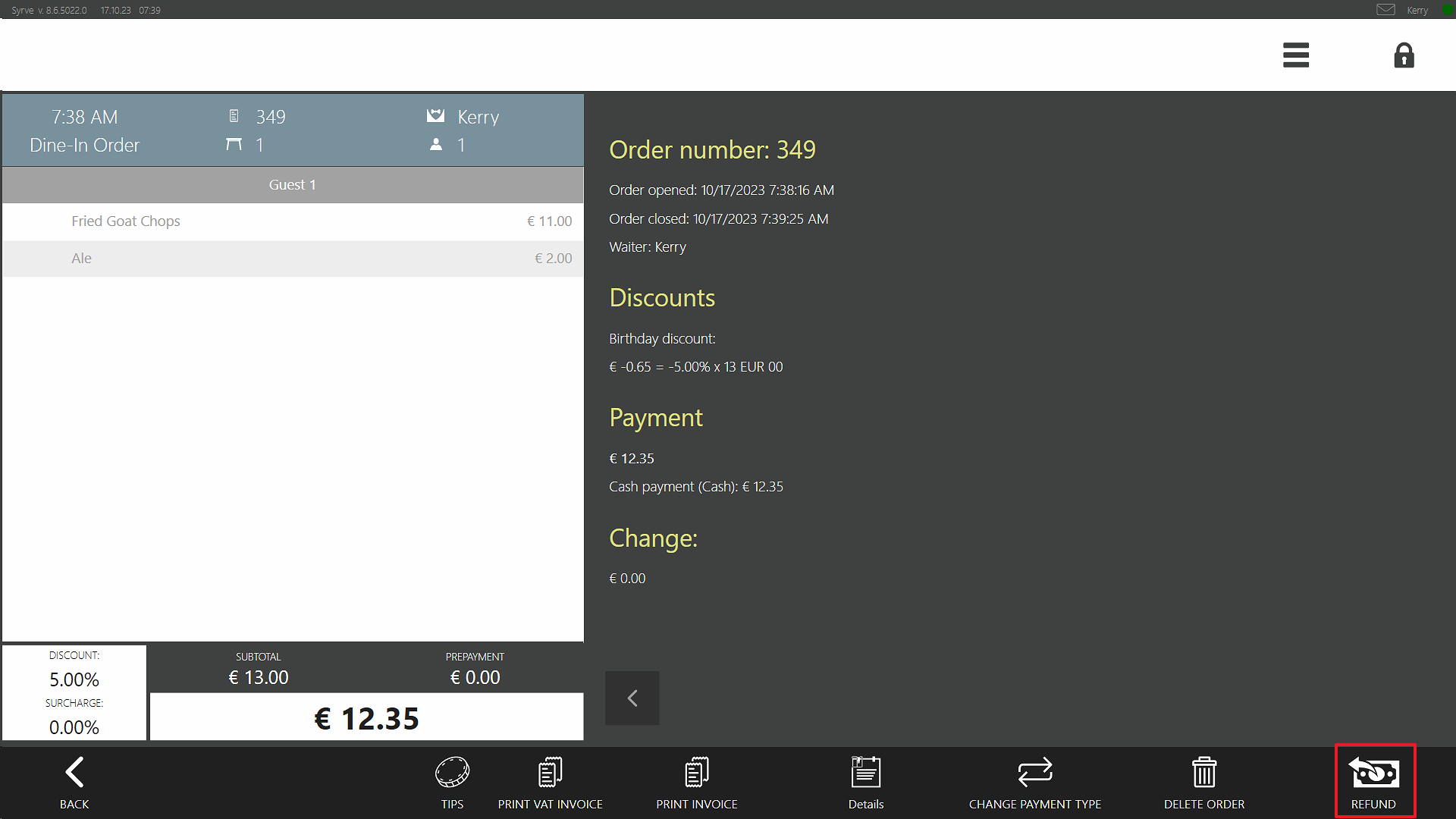 - Jeśli w zamówieniu pozostały jakieś pozycje lub zostały do niego dodane, zamknij je w zwykły sposób. W takim przypadku pobierz dodatkową opłatę od klienta lub wydaj resztę, jeśli zamówienie zostało usunięte.