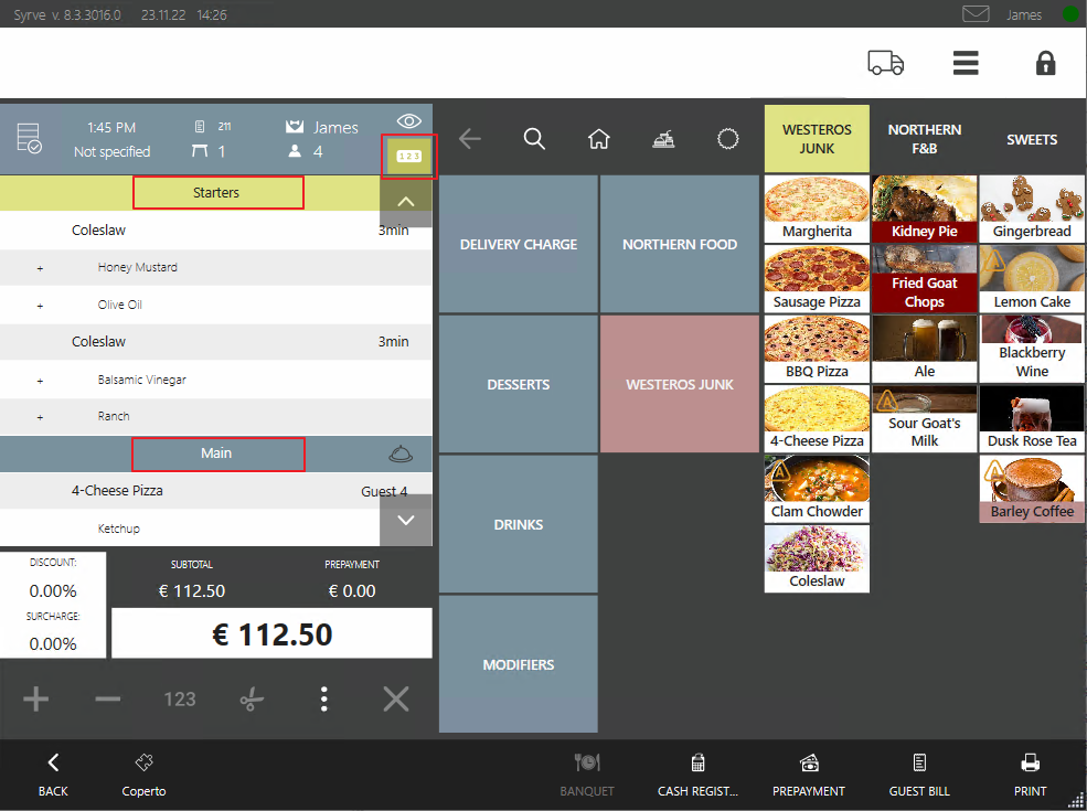 Zamiast używać liczb od 1 do 20, możesz nadać własne nazwy, takie jak Przystawki, Danie główne, Desery i tak dalej. Ułatwi to obsługę zamówień, zwłaszcza bankietów serwowanych przez więcej niż jednego kelnera — każdy będzie wiedział, co jest podawane w danym daniu.