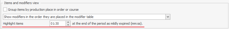 Można go określić w bloku widoku Pozycje i modyfikatory na karcie Ekran kuchni w ustawieniach sklepu.