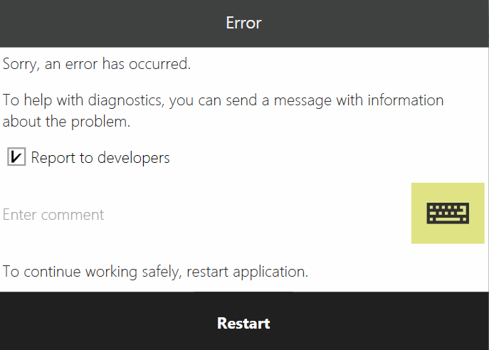Zaznacz pole Raport dla programistów i wpisz swoje uwagi opisujące wcześniejsze działania, aby programiści mogli zidentyfikować i zdiagnozować problem.