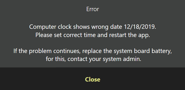 Twój POS oparty na Syrve POS nie uruchomi się, jeśli data systemowa terminala została zresetowana do domyślnej i jest wcześniejsza niż data kompilacji Syrve POS. Ustaw właściwą datę na terminalu i uruchom POS ponownie.