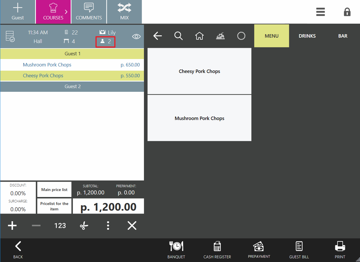 - W oknie przyjmowania zamówienia naciśnij skrót do zmiany liczby gości.