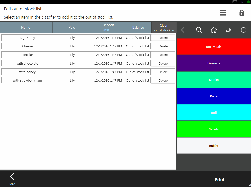 Modyfikatory mogą być również uwzględnione na liście braków magazynowych. Mogą to być modyfikatory pojedyncze i grupowe, na przykład pozycje lunchu biznesowego.