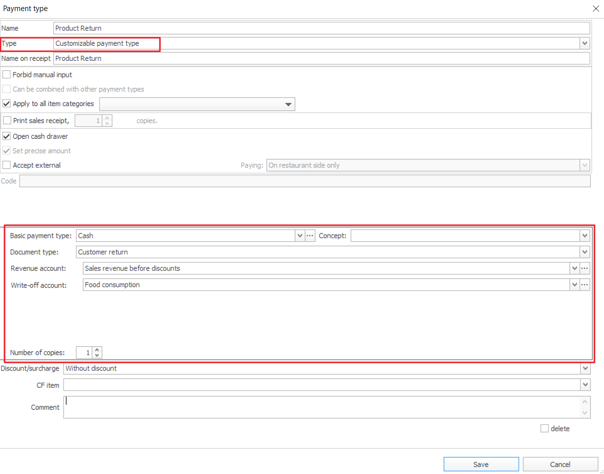 - W Syrve Office przejdź do Sprzedaż detaliczna > Typy płatności.