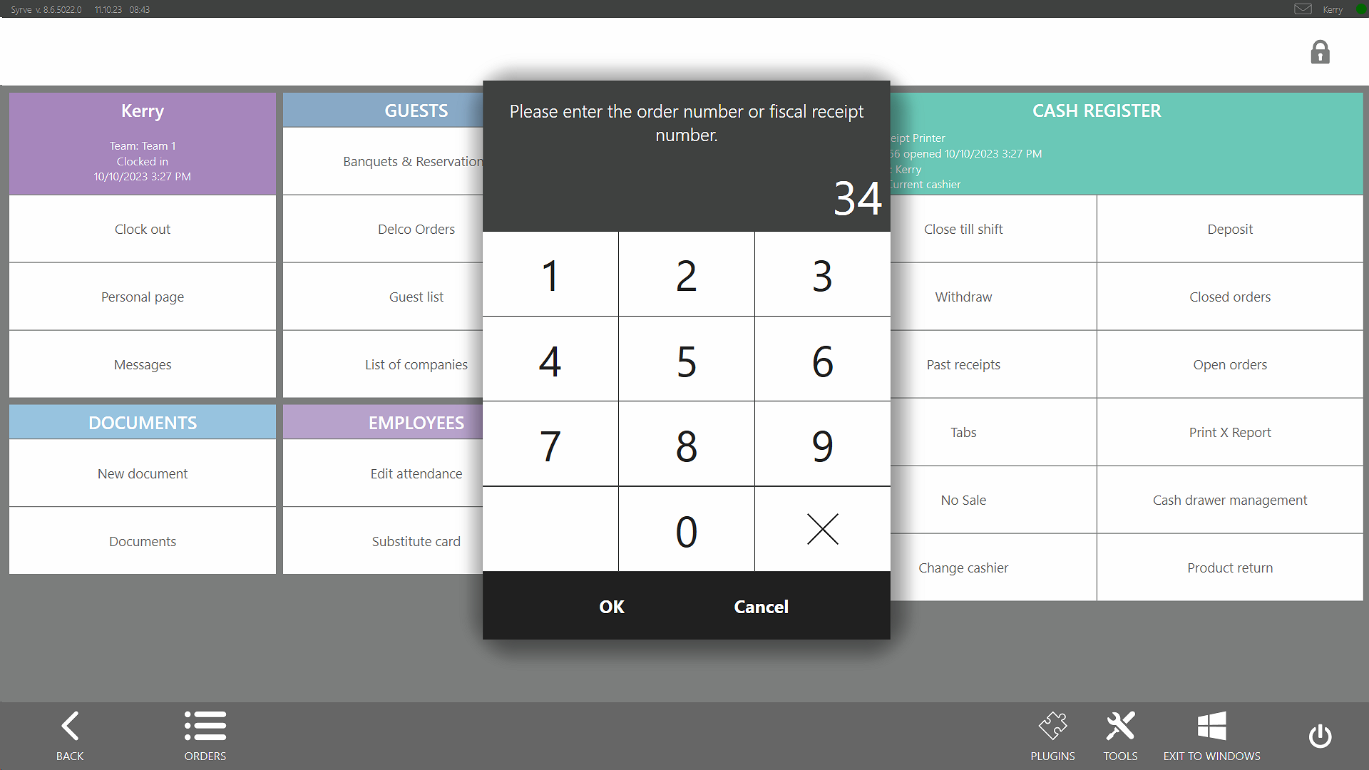 - W okienku podręcznym wpisz numer zamówienia lub paragonu i naciśnij OK.