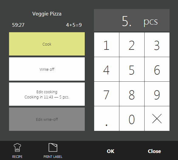 - Naciśnij przycisk dania, którego partia została przygotowana.