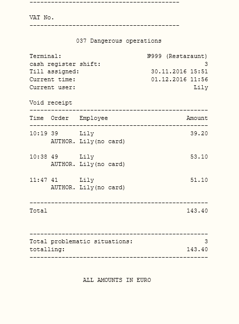 Ponadto liczba dań zmniejsza się zaczynając od najstarszej partii. Jeśli sprzedano przeterminowane danie, ta sytuacja zostanie zarejestrowana w raporcie kontroli magazynu.