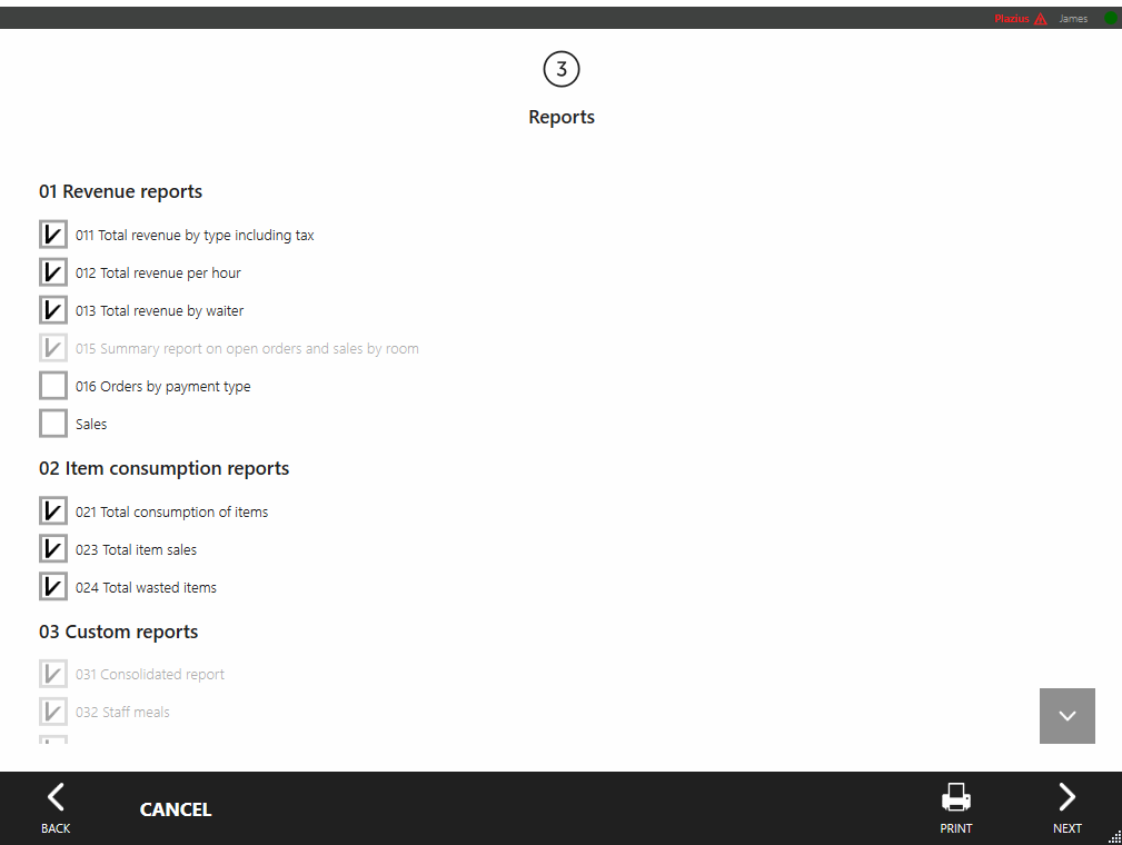 Do drukowania raportów potrzebne jest uprawnienie „Wyświetl raporty w Syrve POS” (F_VRPT).