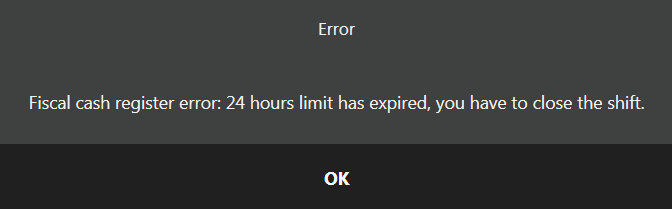 Możesz ograniczyć czas trwania zmiany kasy, jeśli używasz wirtualnej kasy fiskalnej w jej ustawieniach w Syrve Office. Po 24 godzinach na ekranie kasjera pojawi się komunikat wymagający zamknięcia zmiany kasy, aby móc wystawić paragon.