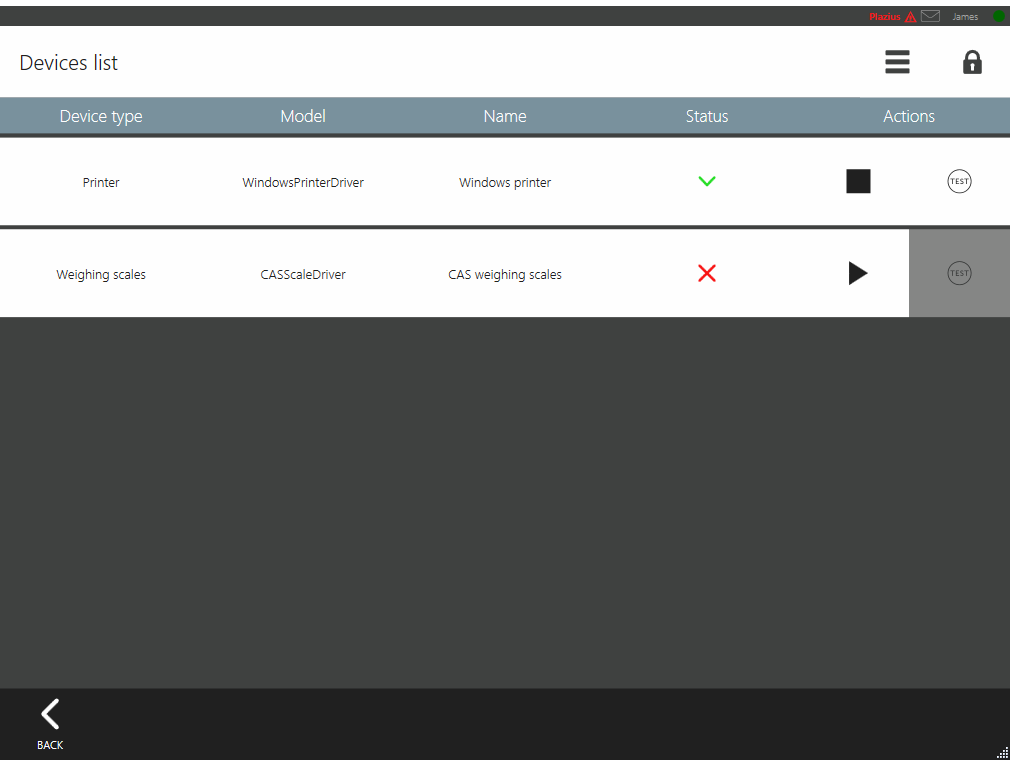 - Wybierz jedno z dostępnych urządzeń: kasa fiskalna, drukarka lub waga.