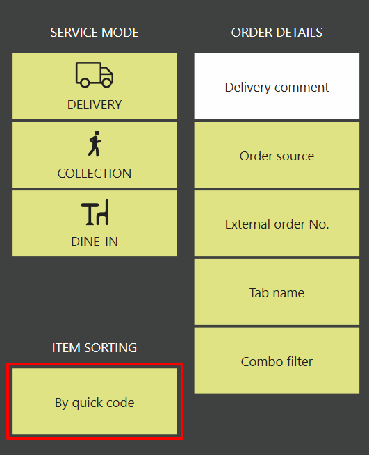 Możesz włączyć sortowanie pozycji zamówienia według szybkich kodów na KDS. Aby to zrobić: