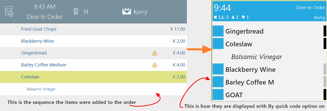 Teraz pozycje zamówienia będą wyświetlane na KDS według ich szybkich kodów, a nie według kolejności dodania do zamówienia.