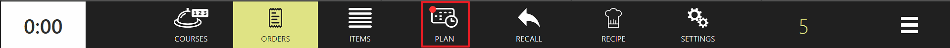 Jeśli po ostatnim przeglądzie trybu Plan pojawią się nowe pozycje zamówione na dowóz lub odbiór, system wyświetli czerwony punkt na przycisku Plan, aby poinformować personel kuchni o nowych zamówieniach.