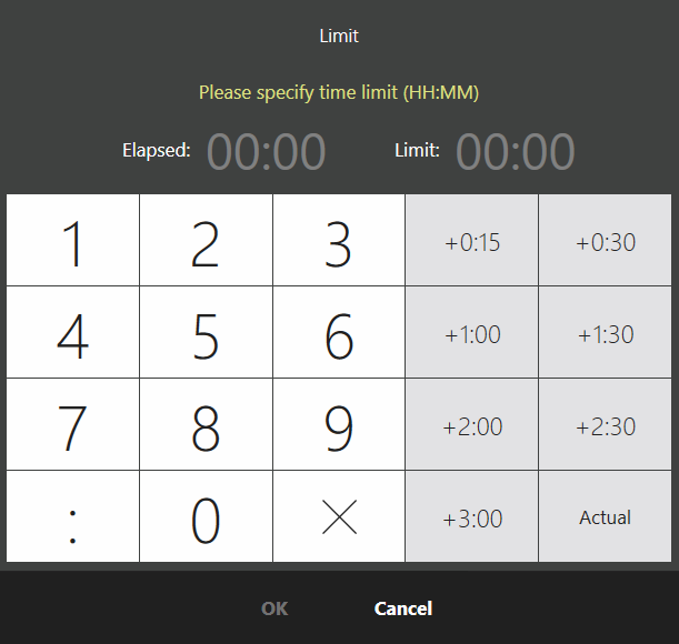 Możesz sprzedawać czas w blokach. W tym celu użyj przycisku Limit znajdującego się w oknie zamówienia. Po osiągnięciu limitu usługa automatycznie się zakończy. Usługę można zatrzymać ręcznie, stukając Rachunek dla Gościa lub Stop, choć czas jest opłacony w całości.