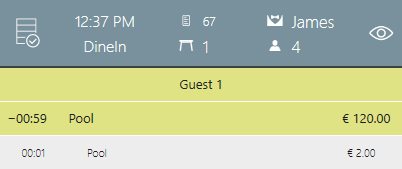 - Gdy goście poproszą o rachunek, wydrukuj Rachunek dla Gościa. Zamówienie zmieni status, stanie się dostępne dla kasjera i zmieni kolor na czerwony na planie sali. W tym momencie timer zatrzyma się, a światła zgasną. Cena zostanie obliczona na podstawie faktycznego czasu gry zaokrąglonego w górę do pełnej liczby.