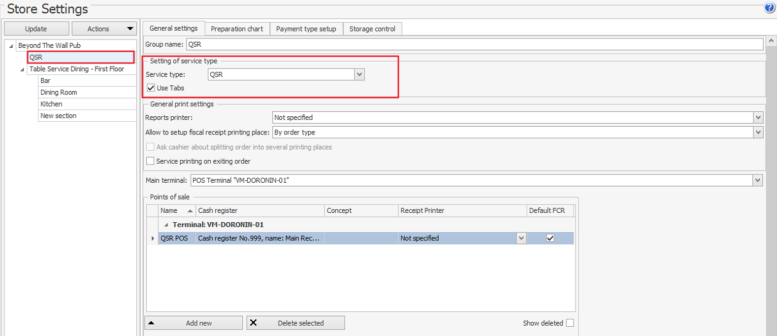 - Przejdź do ustawień grupy i wybierz QSR jako typ obsługi w bloku Ustawienia typu obsługi.