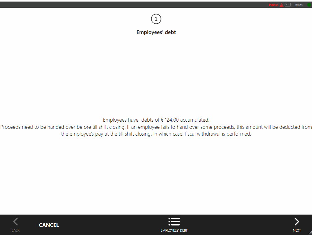 Jeśli kelner ma dług, to przy zamknięciu zmiany kasy będzie musiał wykonać dodatkowy krok.