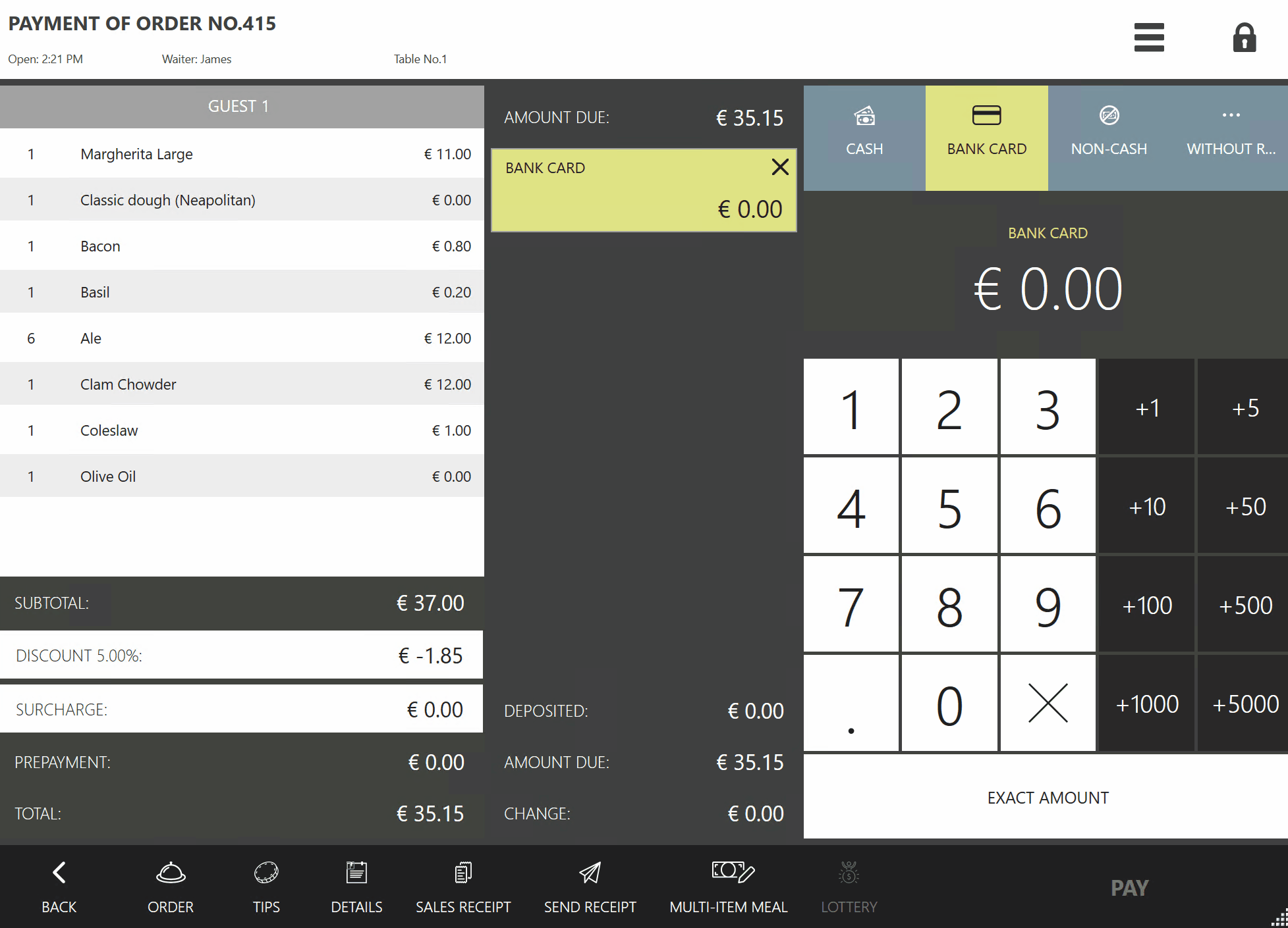- Jeśli nadwyżka to napiwek, naciśnij Napiwki, a zamówienie zostanie zamknięte.
